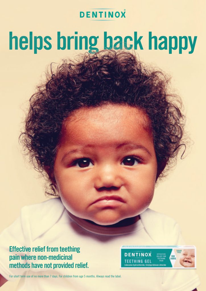 Our campaign highlights the effectiveness of Dentinox to Help Bring Back Happy for little ones facing the challenge of teething, colic and other minor baby ailments.